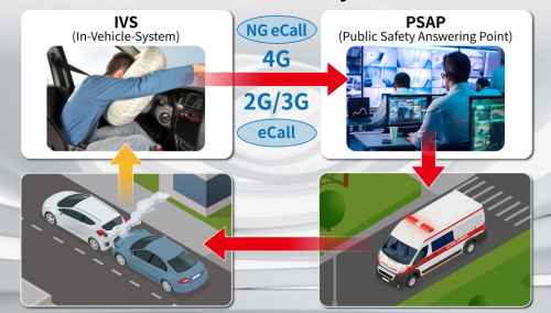 The eCall system automatically places an emergency call from a vehicle following an accident. The in-vehicle system sends essential information, including vehicle data and location, to a public safety answering point (PSAP), enabling emergency services to respond rapidly and effectively.